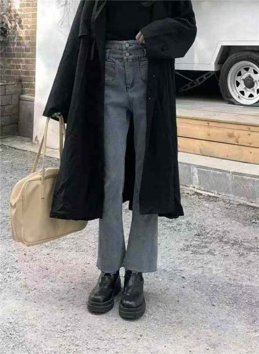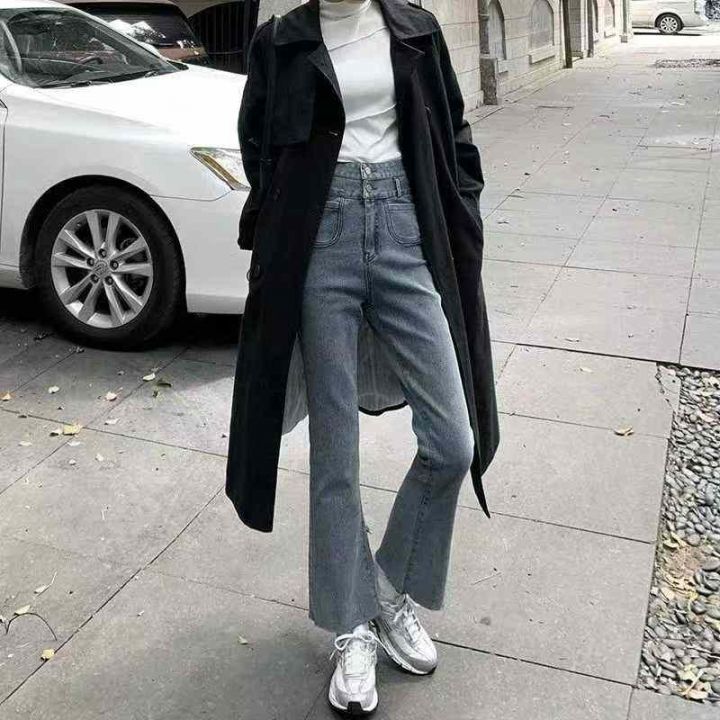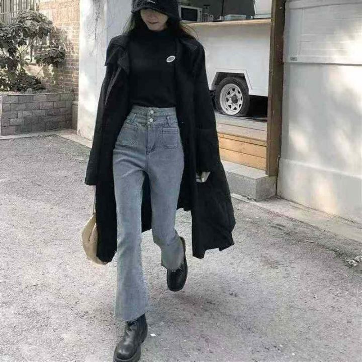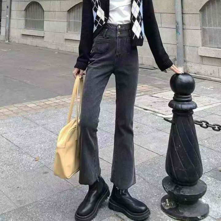 早秋季新品高弹力女装洗水棉毛边微喇叭牛仔裤,独立包...