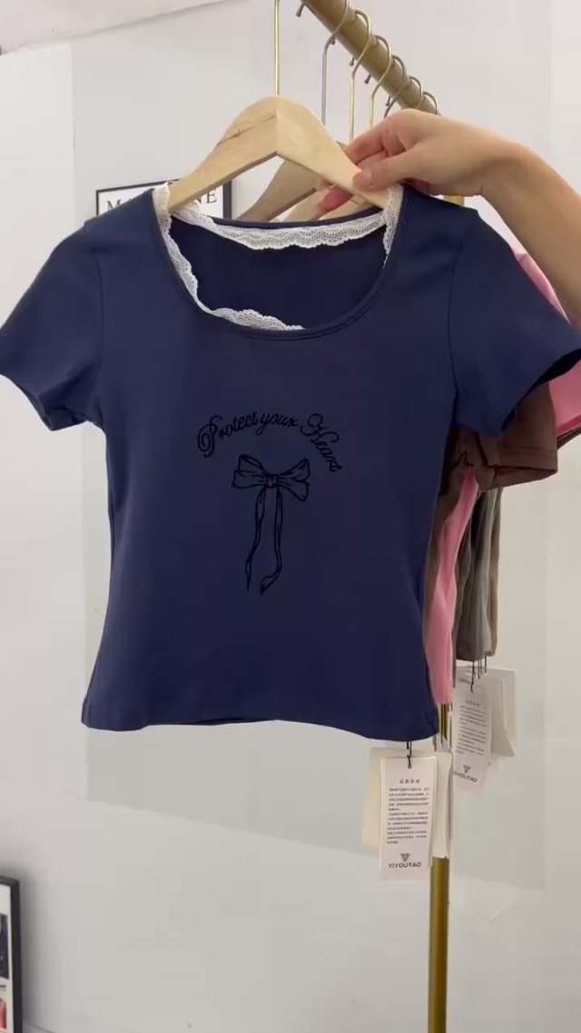 全清8.8元/清210件品牌甜辣风蕾丝花边短袖,单款多色多图,均码,面料螺纹...