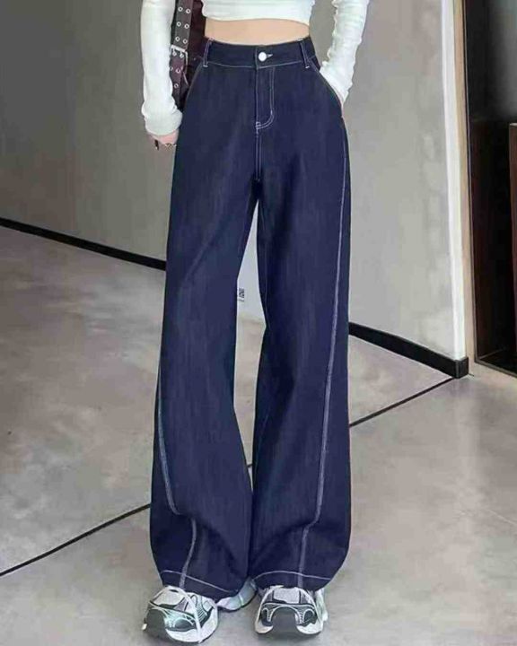 秋冬新款高品质网红爆款洗水棉直筒阔腿牛仔长裤,独立...