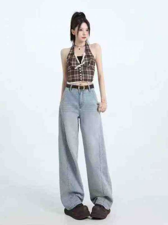 秋冬新款高品质网红爆款洗水棉直筒阔腿牛仔长裤,独立...