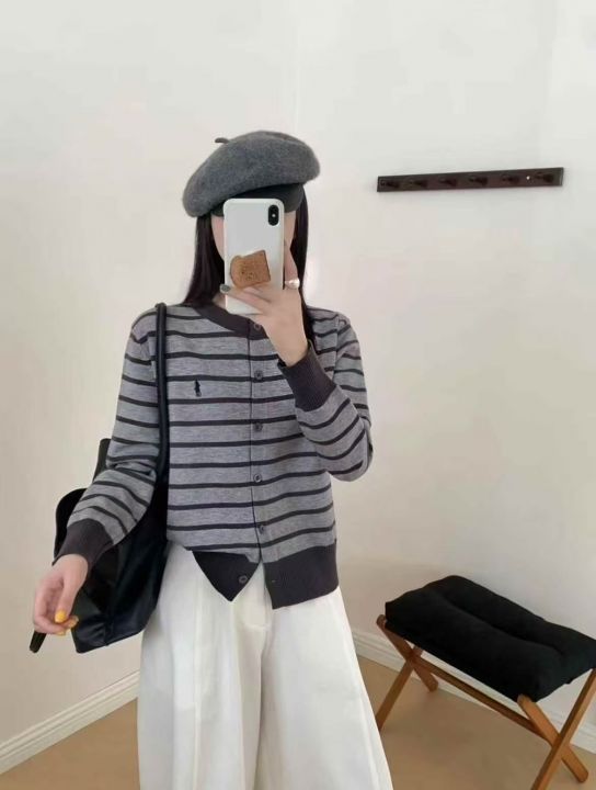 秋季新品软糯撞色条纹宽松慵懒风百搭针织毛衣开衫,独立包装,均码面料软糯...