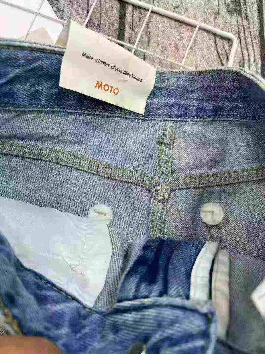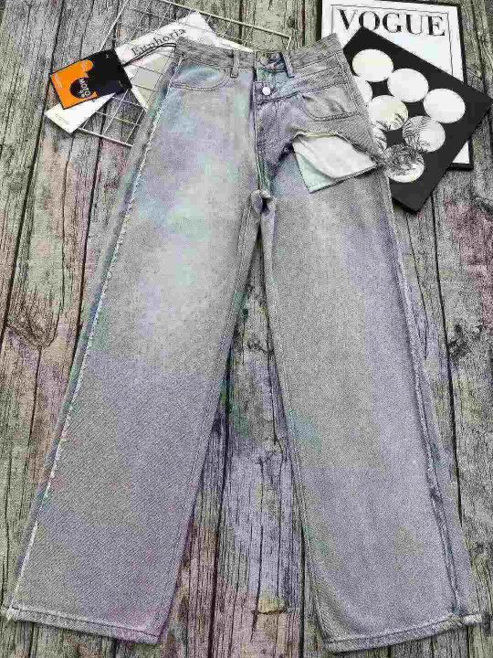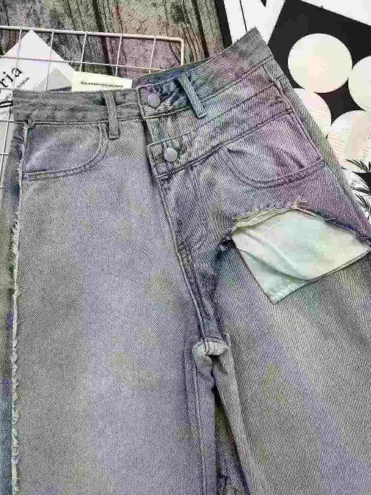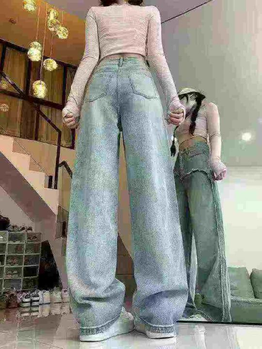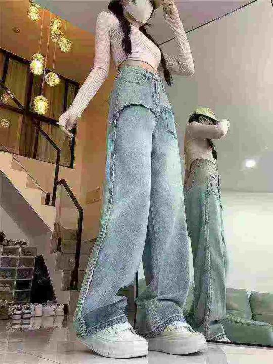☕️63033# 美式拼接毛边阔腿牛仔裤女秋季新款高腰宽...
