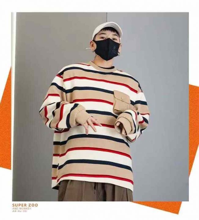 195件,美式潮牌重磅小口袋条纹圆领卫衣日常休闲外套...