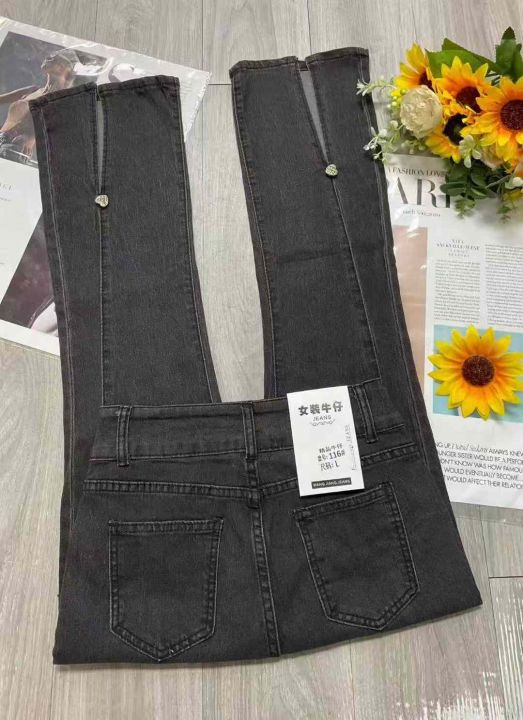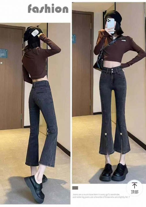 秋季新款高弹力设计感爱心开叉高腰显瘦九分微喇叭牛仔裤,独立包装带腰卡,码数XS--2XL码,724件,全清8.99元超低价秒杀!分货加一!