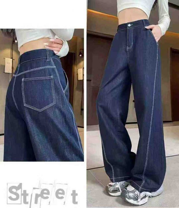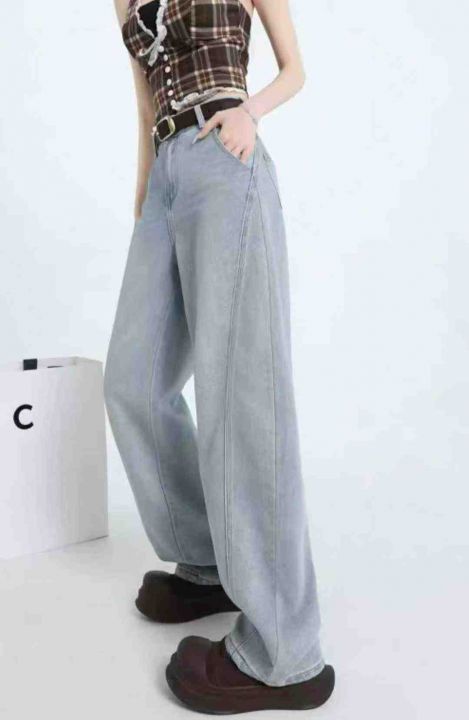 秋冬新款高品质网红爆款洗水棉直筒阔腿牛仔长裤,独立...