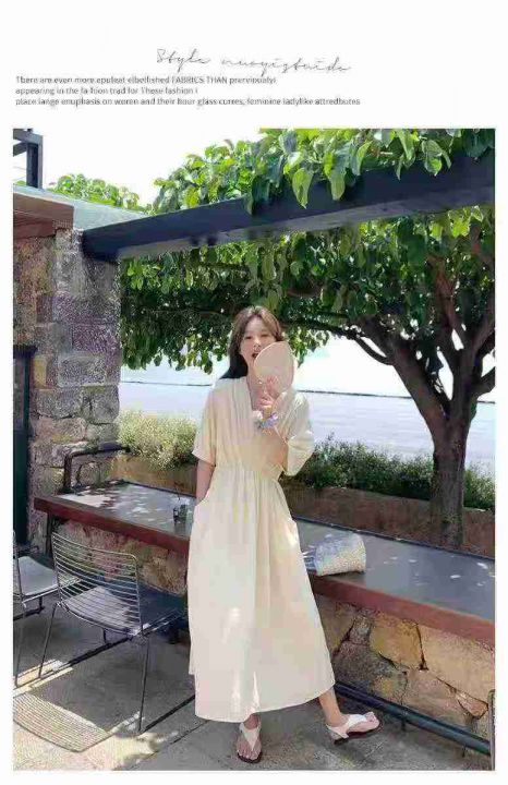 上新全清:14.8一件复古别致V领收腰显瘦杏色连衣裙,[爱心]50件左右,码数S...
