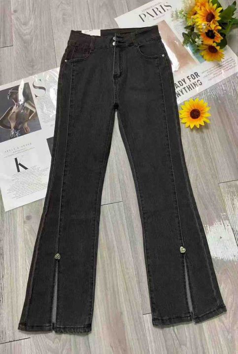 秋季新款高弹力设计感爱心开叉高腰显瘦九分微喇叭牛仔裤,独立包装带腰卡,码数XS--2XL码,724件,全清8.99元超低价秒杀!分货加一!