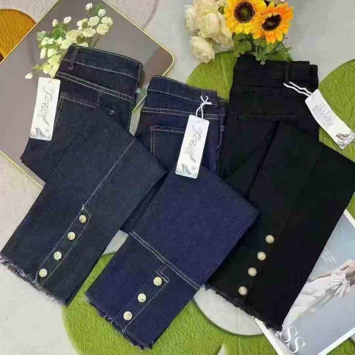 新款牛仔裤女开叉纽扣时尚弹力显瘦欧货排扣九分烟管裤潮,数量95件,码数25...