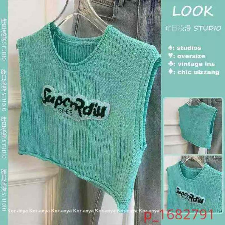 纯欲甜辣短款字母刺绣针织背心女夏季外穿宽松无袖t恤洋气小衫女,码数1-2码(sm码),数量196件