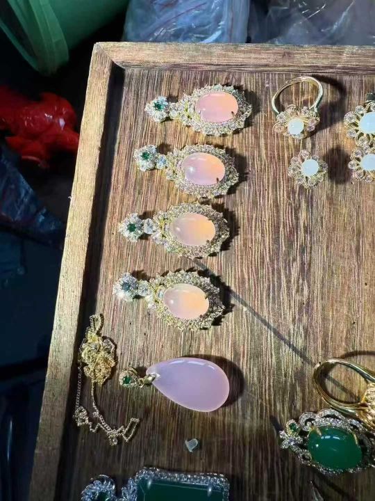 几个款式玉髓吊坠,套装!套装只有100多套,粉色的多,总数702件,套装也算单件!全清单价8元