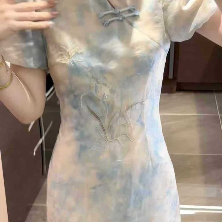 上新全清:23一件新中式国风刺绣收腰设计感盘扣连衣裙...