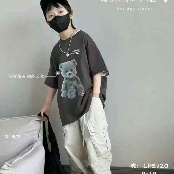800件左右,中大童夏男童女童小熊短袖T恤中大童儿童纯棉200克纯棉T恤,码数130-160韩范,全清7.8元,分货➕1