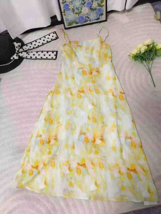 夏季新款茶歇碎花女法式气质甜美吊带连衣裙 数量258件左右 尺码 S--XL 整款两个颜色 图9码数清单 独立包装带吊牌 货品整洁质佳