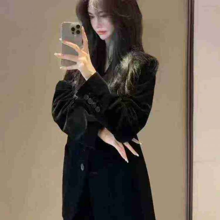 上新全清:13.8一件气质时尚ins金丝绒黑色百搭宽松外...