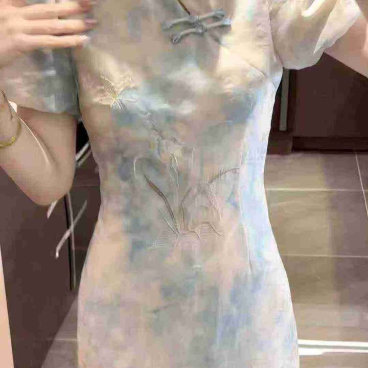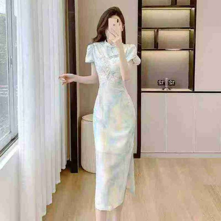 新中式国风刺绣收腰设计感盘扣连衣裙,[爱心]105件左右,码数S-L,穿80-130斤,万佳档口货,原包装️无瑕疵,[666]实体店品质,分货加一