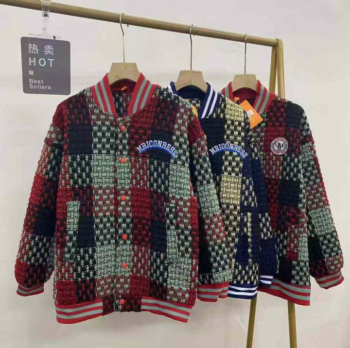 拼色编织格子棒球服204件20.8,小香风宽松版情侣款,...