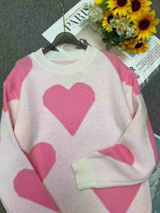秋冬新款公司原单大版宽松慵懒风爱心提花北极绒套头毛衣,独立包装,码数S-...