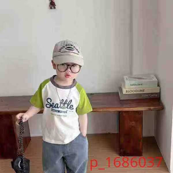 全清6.8 分货➕1 纯棉英文字母印花拼袖童装T恤 数...