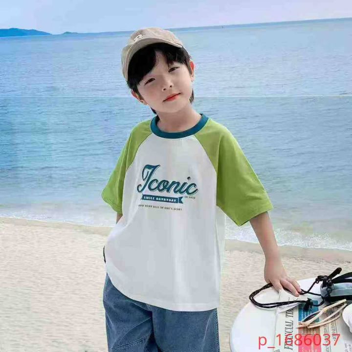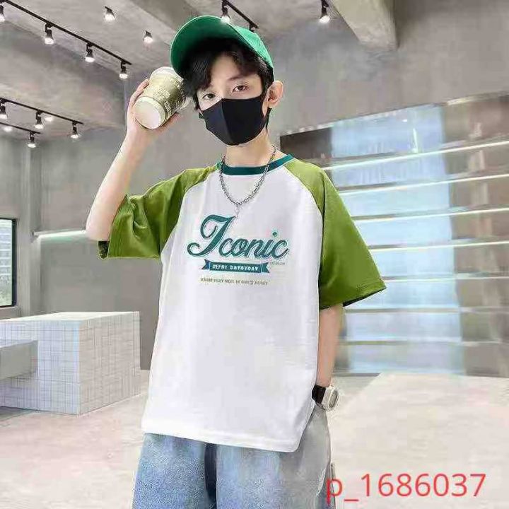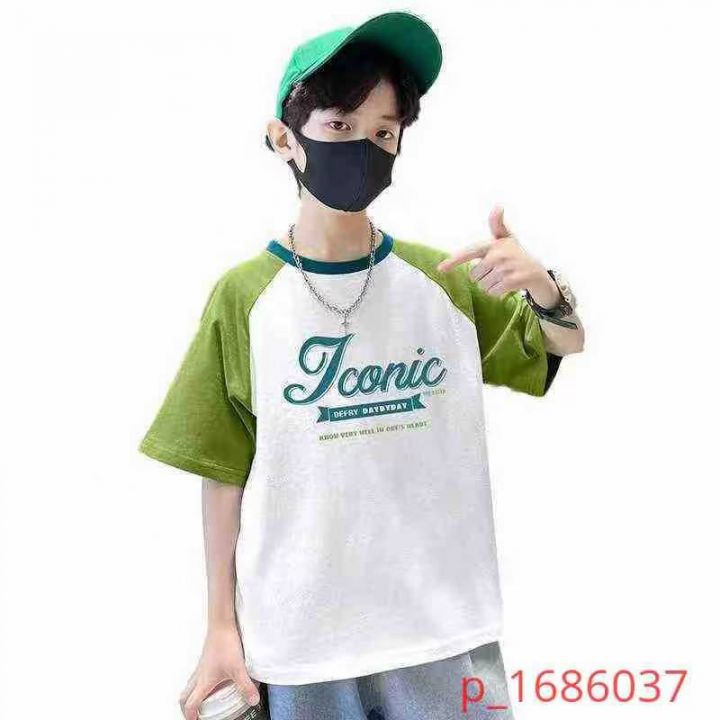 纯棉英文字母印花拼袖童装T恤 数量1000件左右 尺码110--160 整款单色 后领包边 独立包装带吊牌 模特图供参考 _@_@