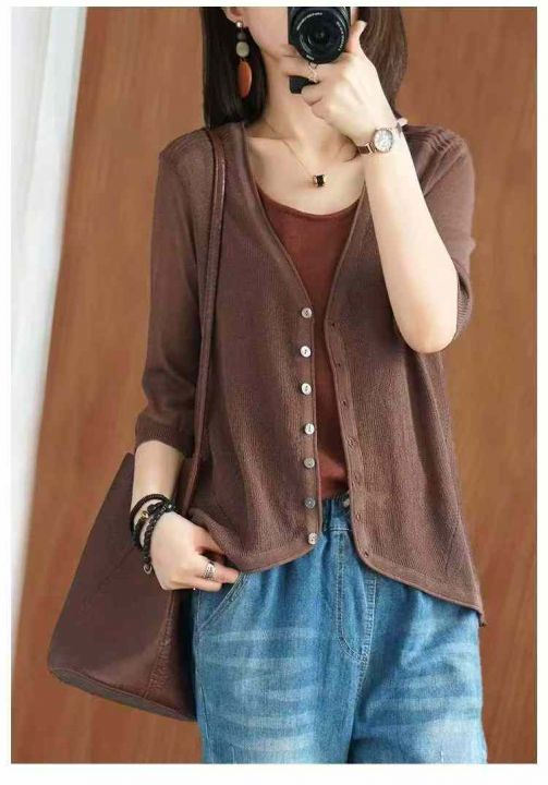 夏季新款轻熟女装净版简约宽松针织开衫,独立包装,均...