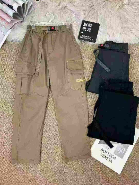 中大童 童装纯棉多口袋工装裤,单款三色,纯棉面料,厚款,裤子有微弹力,数量760条,尺码60-160码(3-12岁可穿)内里包边,外单工厂新货,超性价比,无包装,全清10.5分货+1