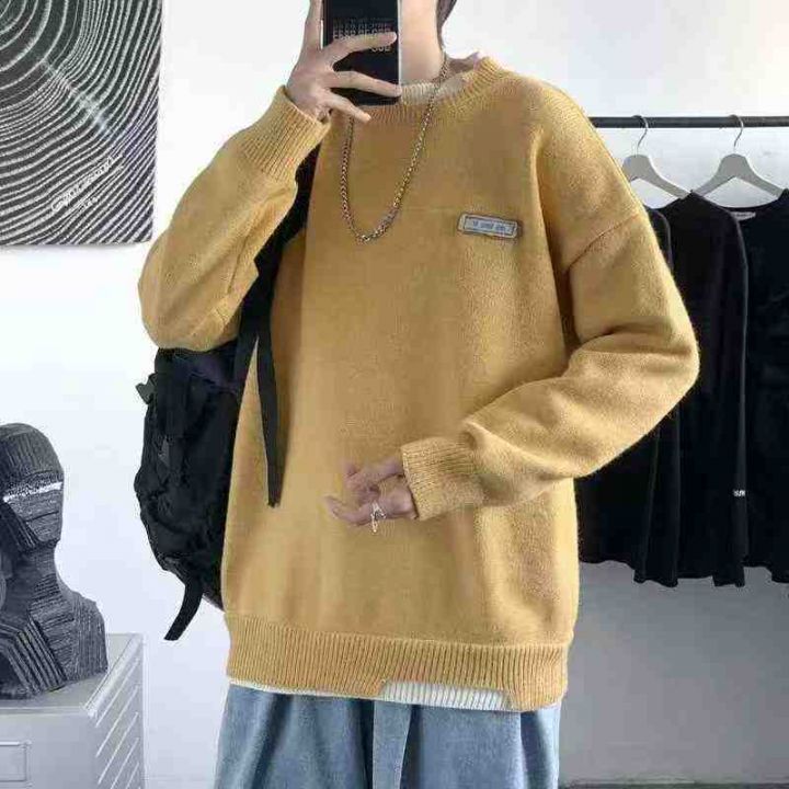 秋冬新款男女同款日系假两件宽松潮流百搭贴标套头毛衣,独立包装,码数M--2XL码,264件,全清6.9元超低价秒杀!分货加一!