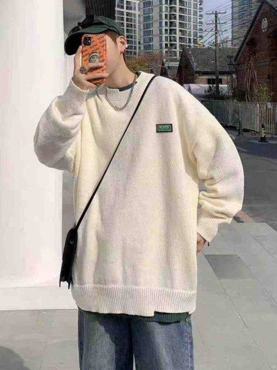 秋冬新款男女同款日系假两件宽松潮流百搭贴标套头毛衣...