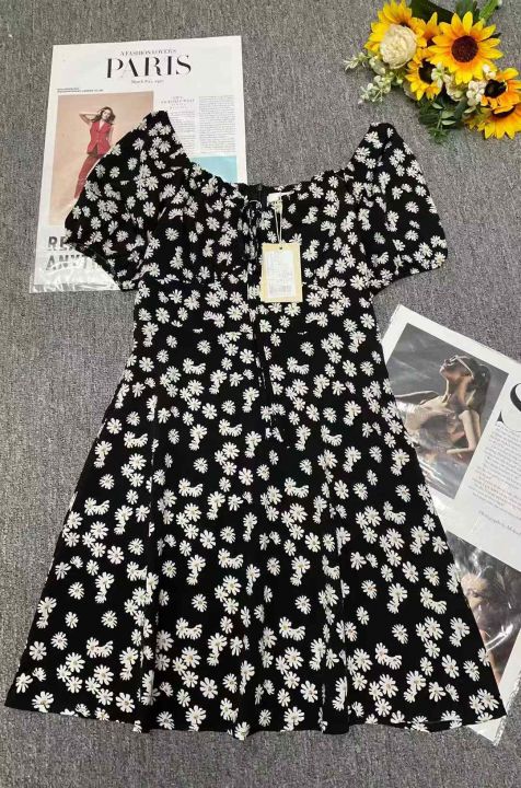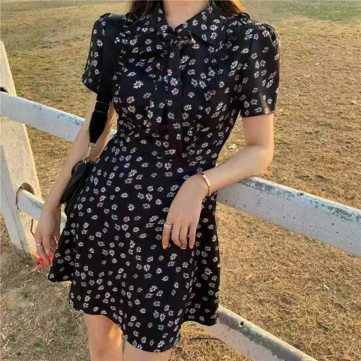 夏季新款品牌原单法式复古雪纺碎花连衣裙,图片款,码...