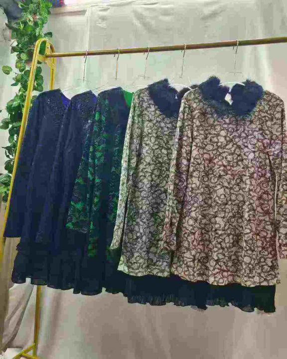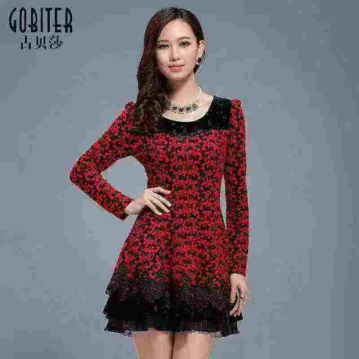 500件妈妈裙摆上衣女蕾丝打底衫中长款连衣裙2025春秋...