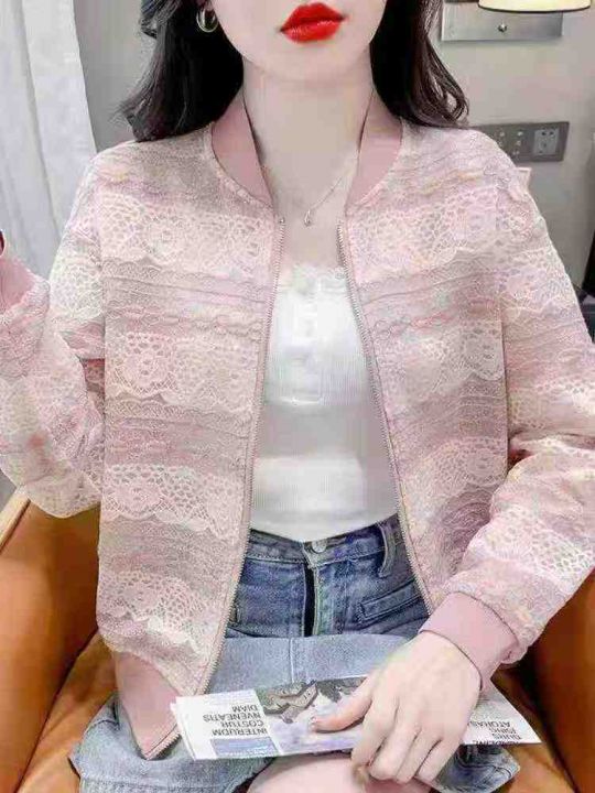 深圳南油高品质靓货,小众设计短款外套女春季时尚百搭蕾丝镂空棒球上衣,数量385件,码数S-M-L-XL,全清11.8元,分货+1