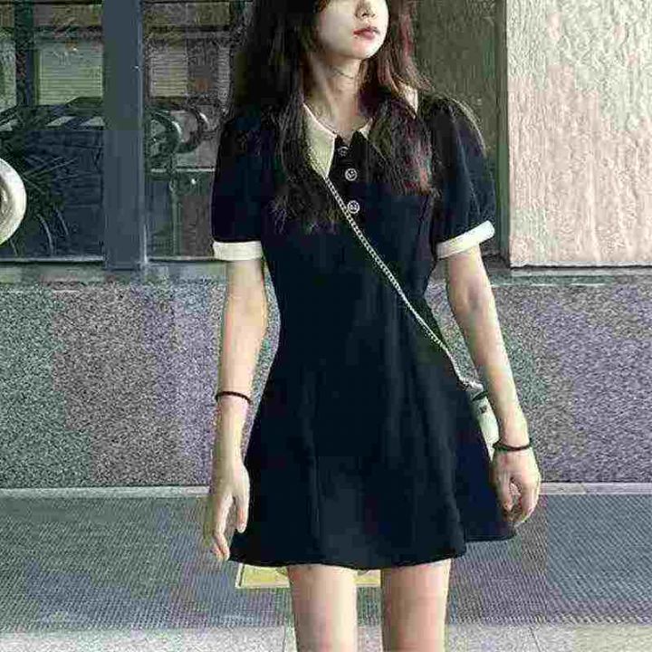 424件,polo气质学院风连衣裙短袖法式夏季新款百搭小...