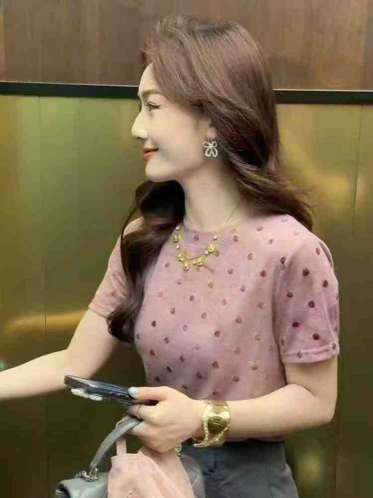重工晕染波点圆领短袖T恤女夏季设计感显瘦遮肉气质上...