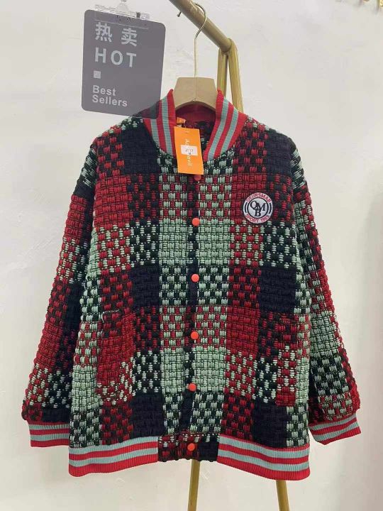 拼色编织格子棒球服204件20.8,小香风宽松版情侣款,...