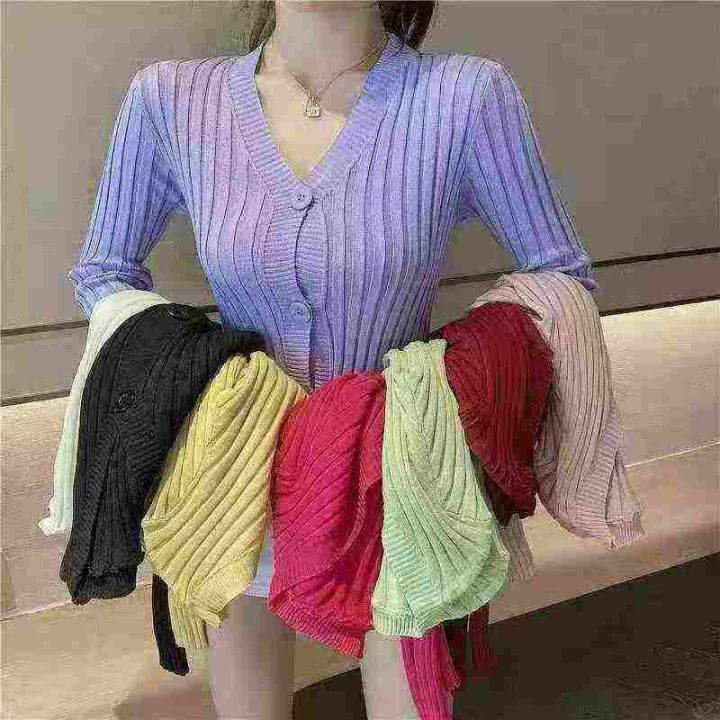 韩版2025chic长袖针织开衫女装外套毛衣春秋新款修身蕾...