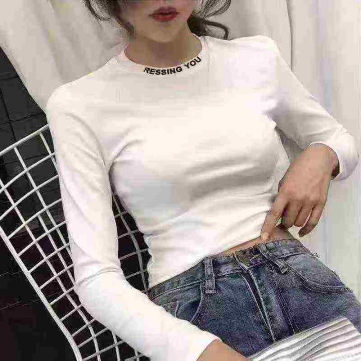 时尚百搭显瘦刺绣紧身打底上衣,小整款,高弹力,品质...