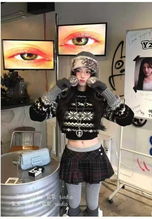 费尔岛毛衣慵懒辣妹风针织衫高级感纯欲上衣,独立包装...