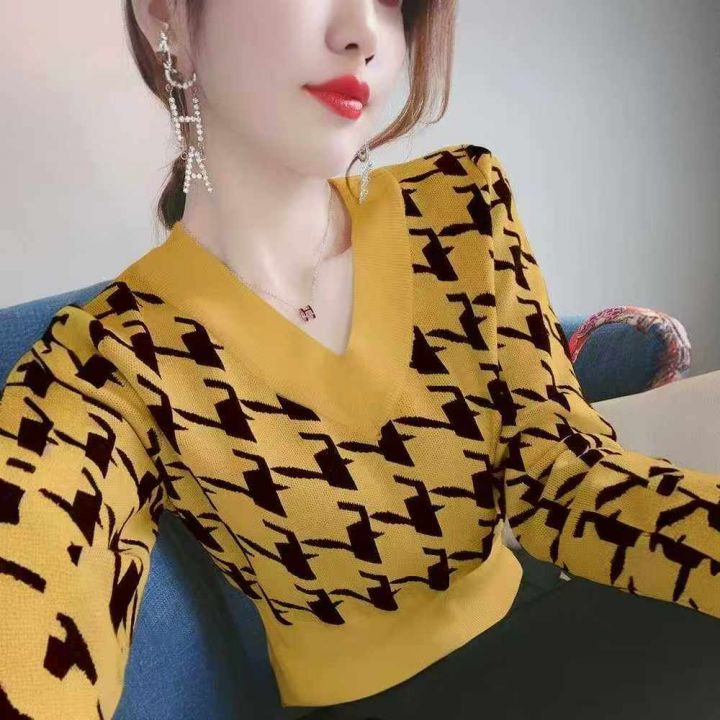 秋冬新款韩版宽松百搭提花V领套头毛衣,独立包装,均码面料软糯舒适弹力大...