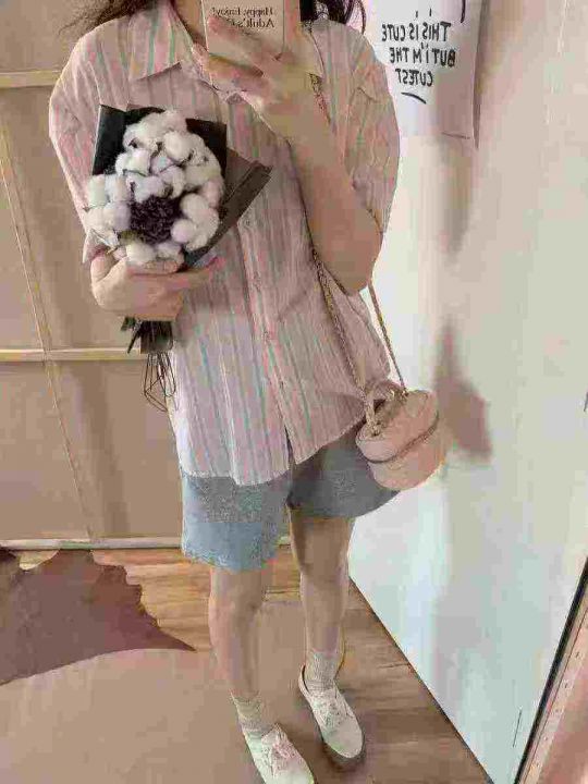 多巴胺粉色条纹温柔别致百搭衬衫,[爱心]110件左右,码数S-XL,穿80-140斤,万佳档口货,原包装️无瑕疵,[666]实体店品质,分货加一
