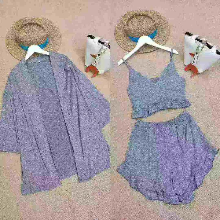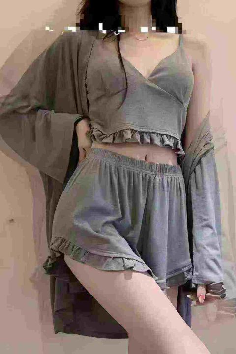 [月亮]:高级灰休闲吊带带胸垫家居三件套