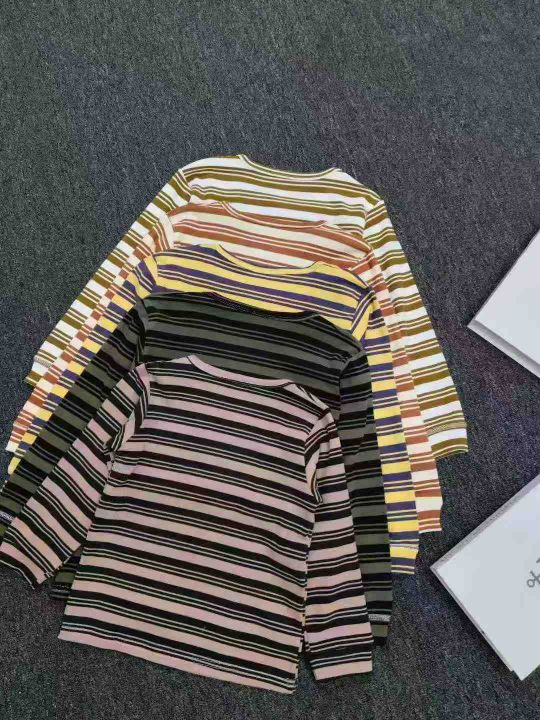女装卫衣春秋季简约条纹圆领长袖款式套头拼色卫衣,码数S M L XL,独立包装...