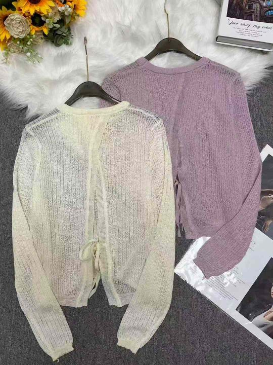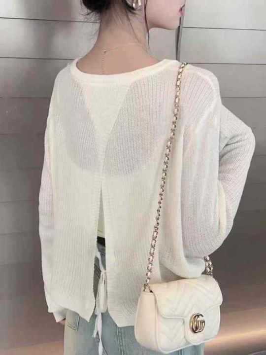 早秋季新品设计款后背开叉绑带镂空时尚长袖针织衫,独立包装,均码面料柔软舒适,320件,全清3.9元超低价秒杀!分货加一!