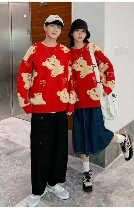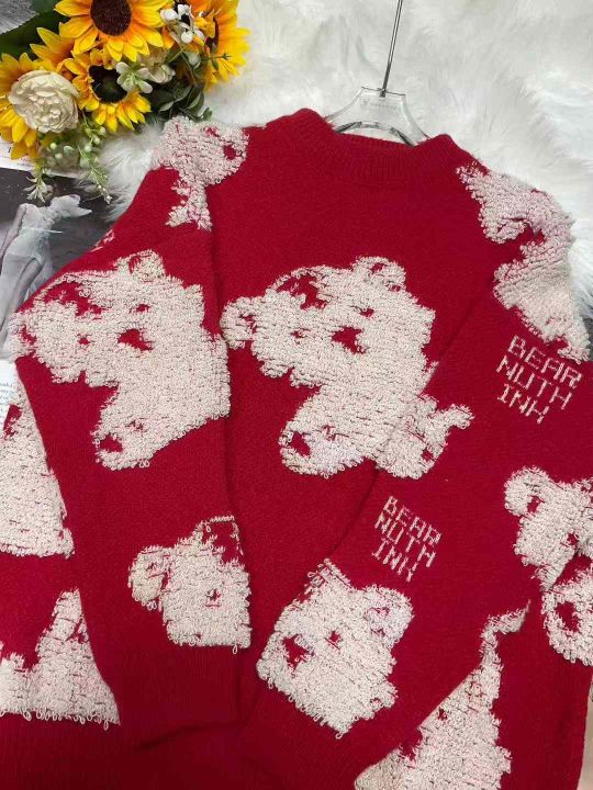 秋冬新款男女同款宽松百搭植绒卡通红色提花圆领套头毛衣,独立包装,均码面料软糯厚实,45件,全清9.9元超低价秒杀!