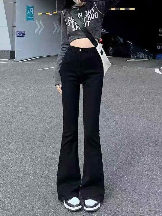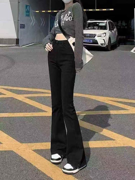 ☕️高弹力黑色微喇叭牛仔裤女显瘦显高弹力高腰拖地马...