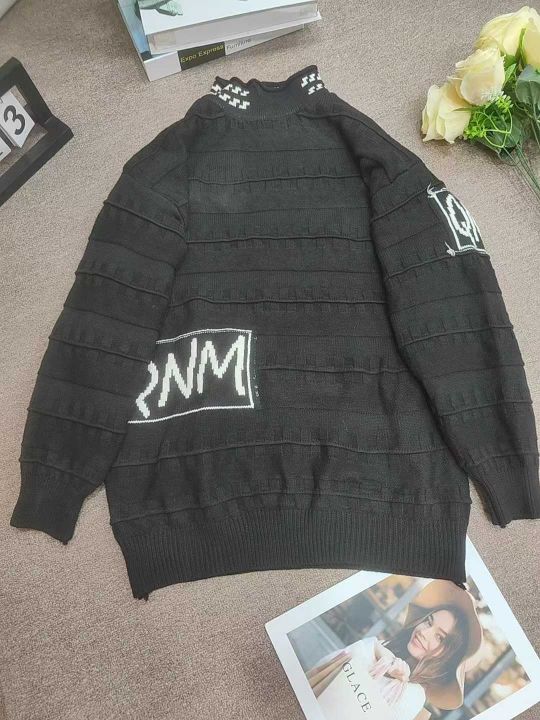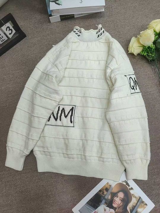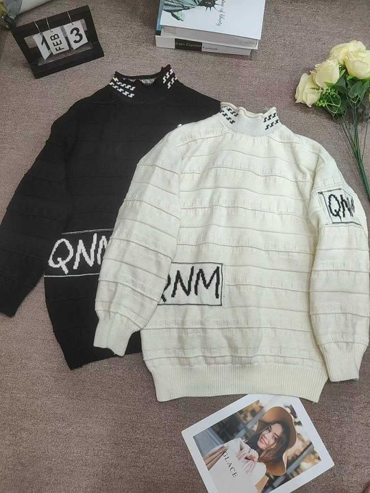 大版型厚重高档半高领条纹提花毛衣男女同款秋冬时尚休闲套头毛衣,独立包装,M-2XL,135件,清8.8