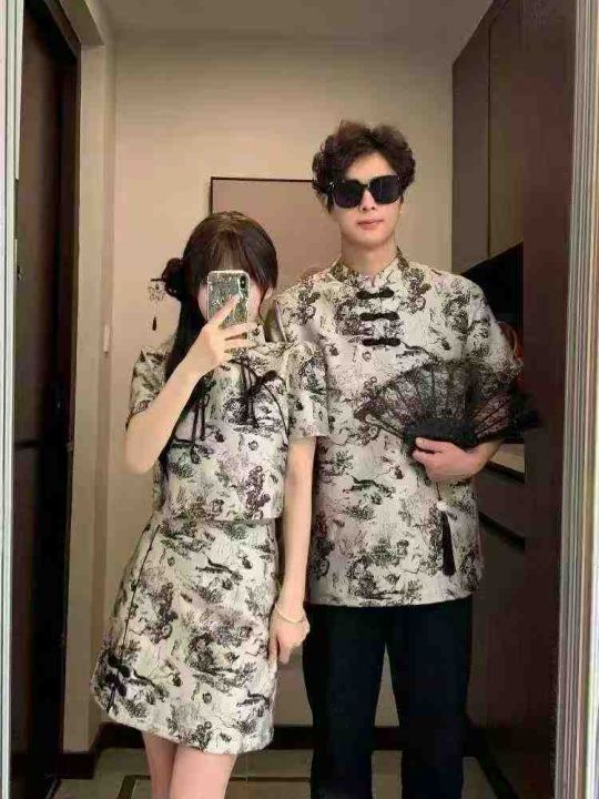 ① 新中式高级感小众法式复古国风裙子两件套短袖!带...