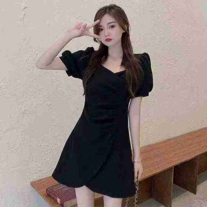 法式气质不规则小黑裙女赫本风方领短袖连衣裙,整款两色,品质好,有独立包装,数量160件左右,码数11-14(S-XL),全清7.8(不分货)
