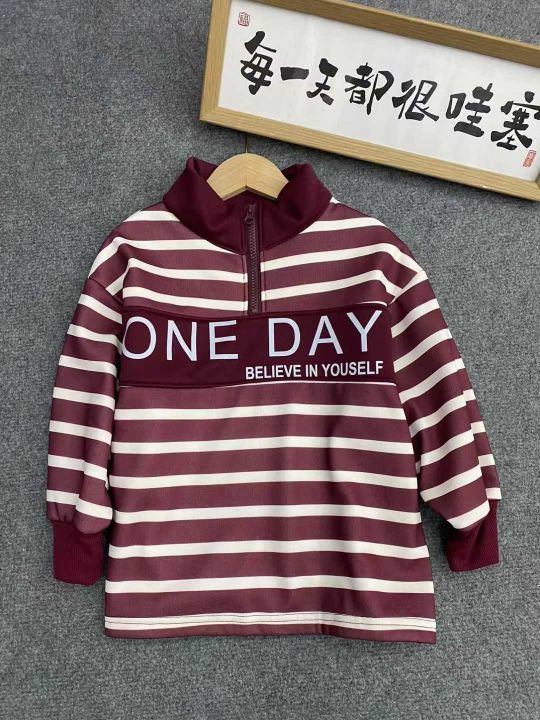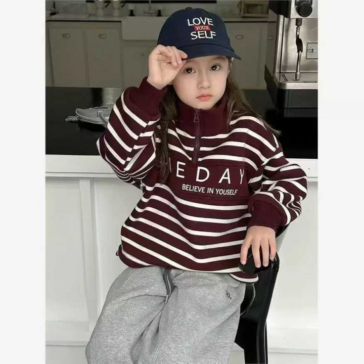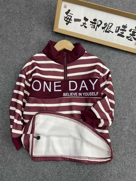 童装条纹加绒上衣64件,清6.5,撞色拼接设计,字母印...