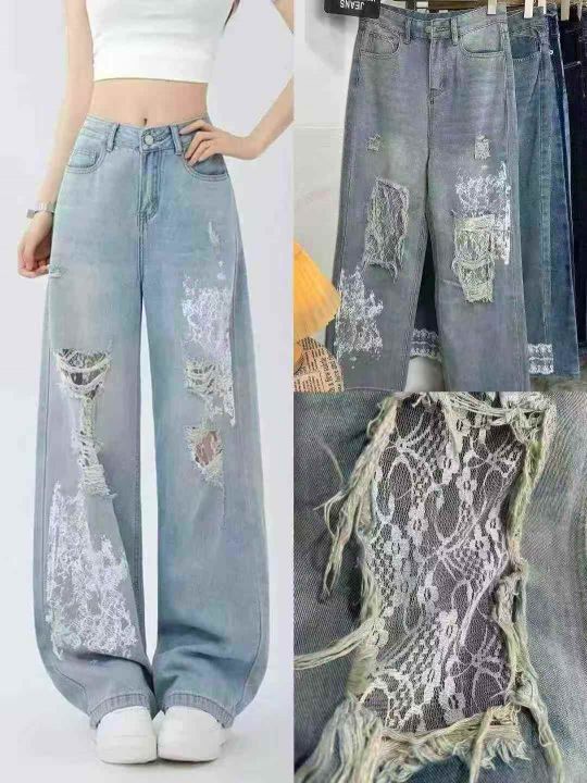 天猫下架一批高品质网红靓妹女装洗水棉小整杂款牛仔阔腿直筒烟管紧身牛仔裤...