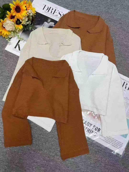 1200件韩系辣妹polo领显瘦露脐紧靓妹长袖T恤,尺码xs-XL ,面料软糯高弹力...