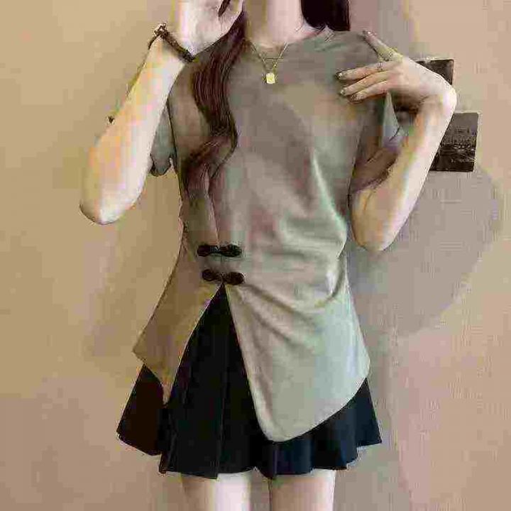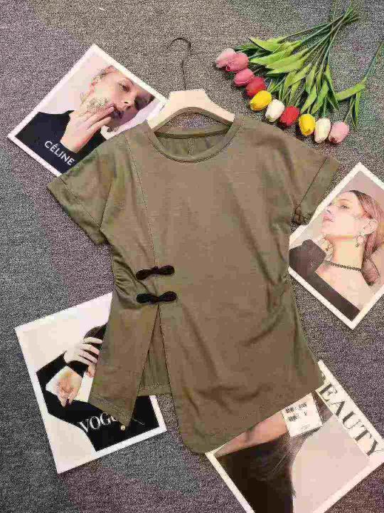 复古盘扣不规则设计感开叉显瘦上衣,[爱心]60件左右,码数S-L,穿80斤-130斤,万佳档口货,原包装️无瑕疵,实体店品质